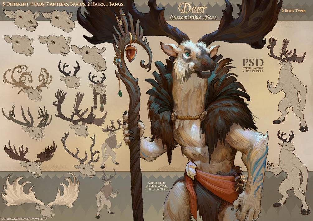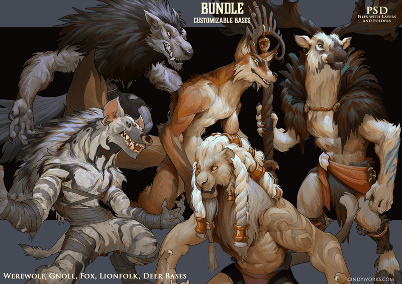 This Bundle Contains the Bases: Lionfolk, Deer, Werewolf, Gnoll and Fox.