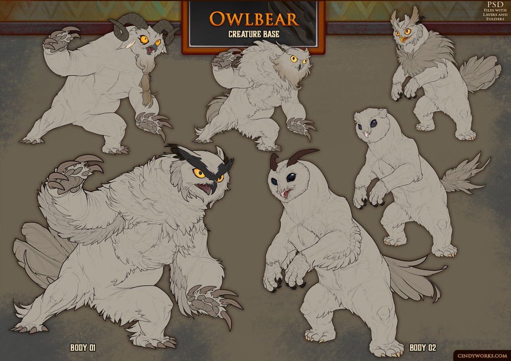 PSD Files with Lines in Layers for you to paint and create your own Owlbear!